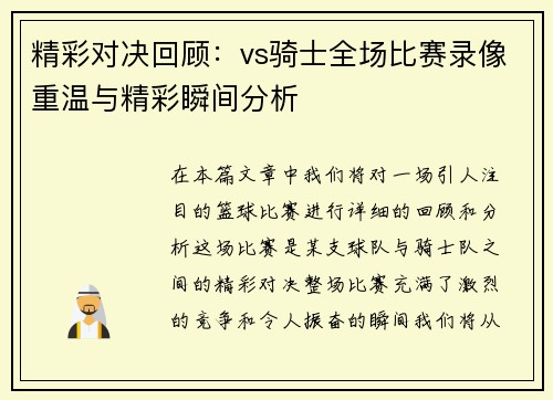 在近期的中超联赛中,重庆与富力展开了一场精彩绝伦的对决,两队在激烈的比赛中奉献了多次令人叹为观止的进球。整场比赛充满了紧张刺激,双方球员都展现出了极高的竞技水平和团队配合。本文将从四个方面详细阐述这场四五大战,包括比赛背景分析、进攻战术解析、精彩进球回顾以及球迷反响和后续展望,带你深入感受这场足球盛宴的魅力。 1、比赛背景分析 本场比赛前,重庆和富力两队都经历了各自不同的发展阶段。重庆队在主教练...