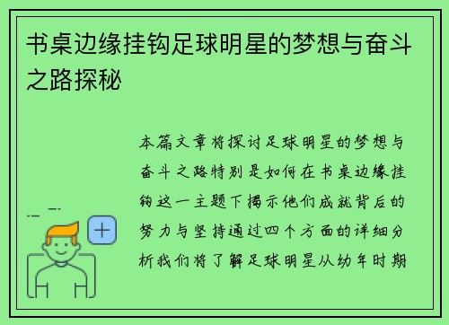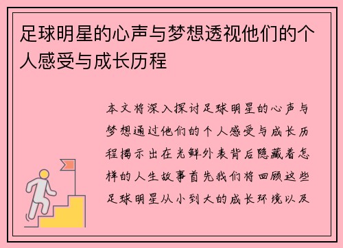 在当今足球界,许多明星球员因其卓越的表现和个性鲜明而受到广泛关注。在这个过程中,他们的英文昵称与网名也成为了球迷热议的话题。这些昵称不仅仅是简单的称谓,往往蕴含着深刻的含义、历史渊源以及个人故事。本文将从四个方面深入解析足球明星们的英文昵称与网名,包括昵称起源、文化背景、影响力及其对球迷的意义等,旨在帮助读者更好地理解这些背后的故事。 1、昵称起源与发展 足球明星的英文昵称通常来源于他们在比赛中...